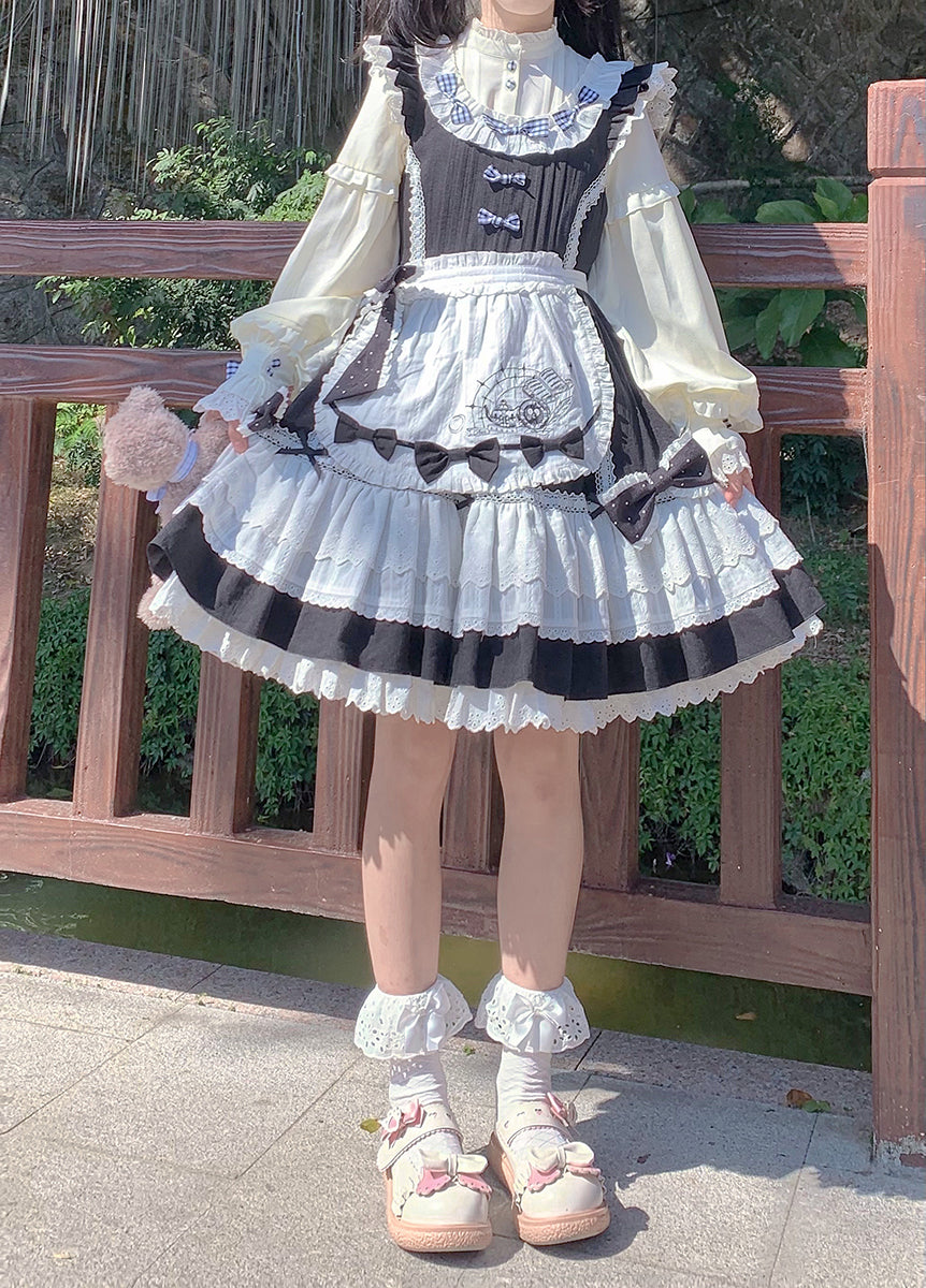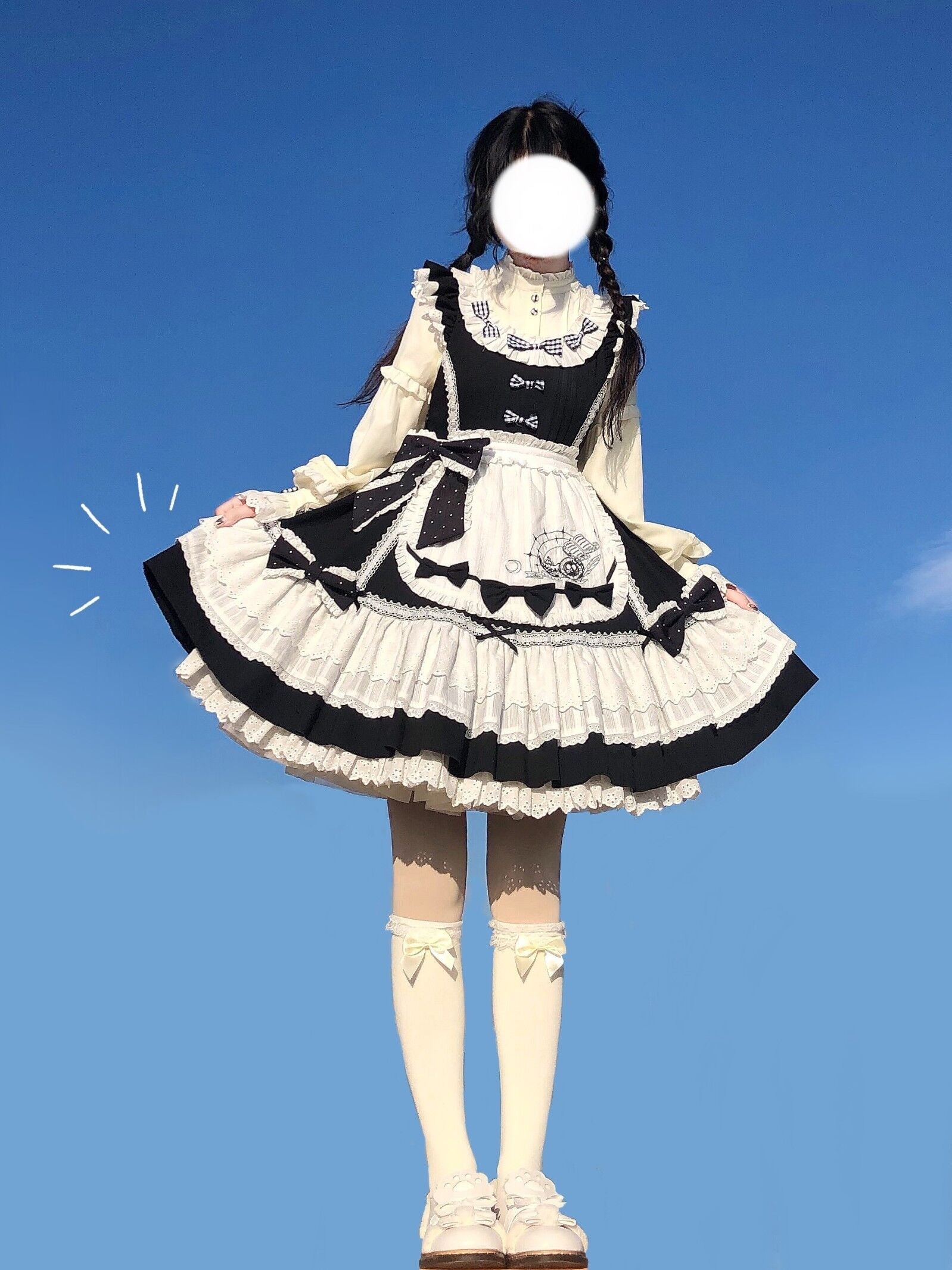 Colour: Black vest skirt + apron;Blue sundress + apron