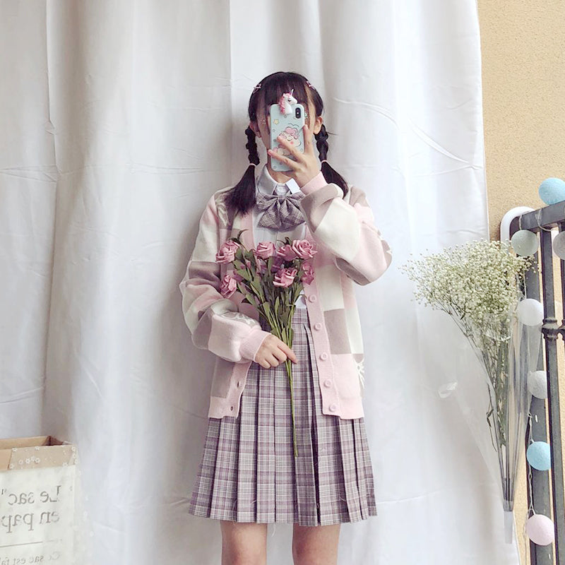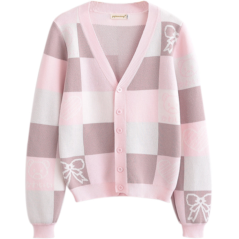 New long-sleeved plaid knitted jacket PL51512