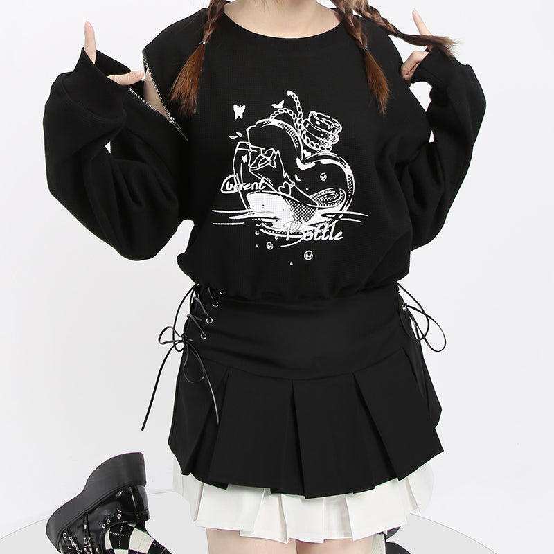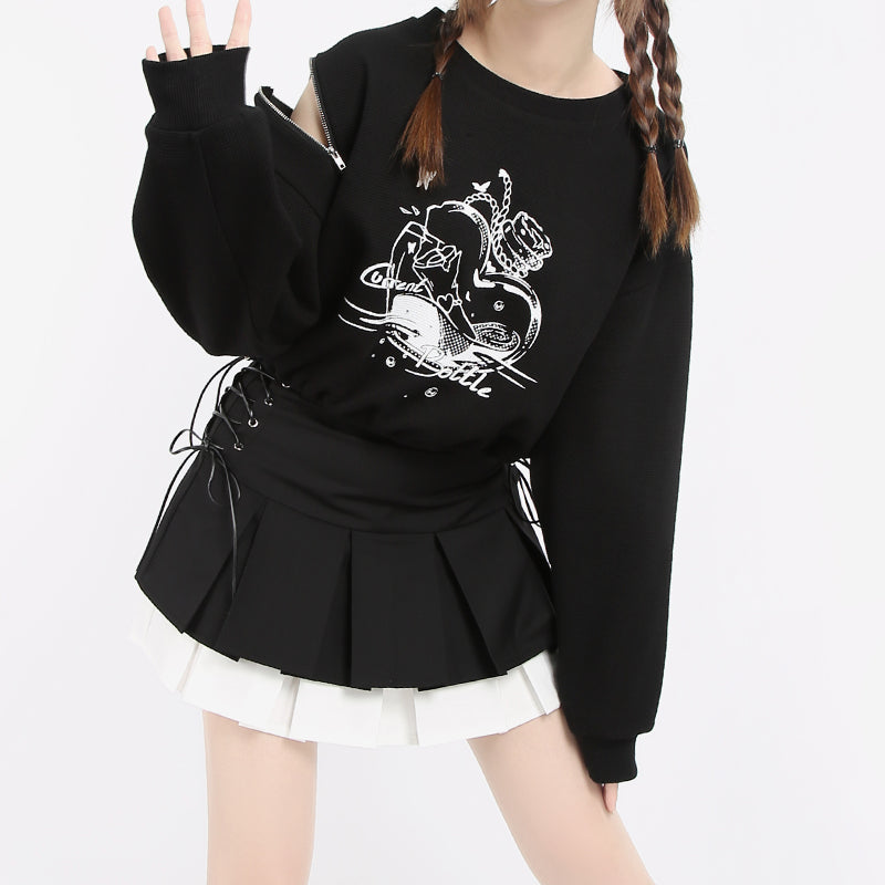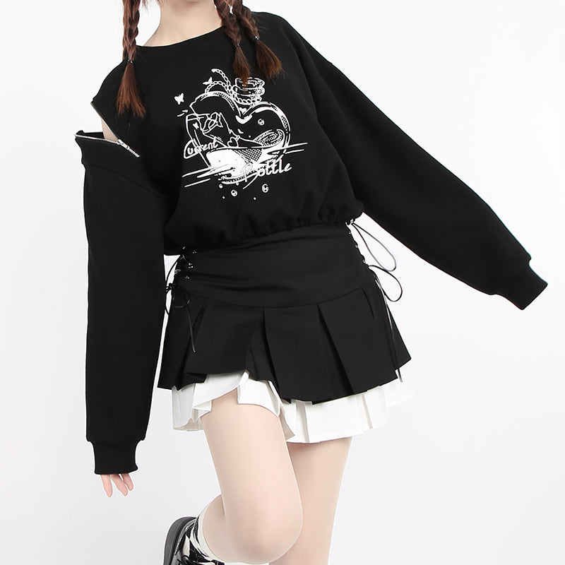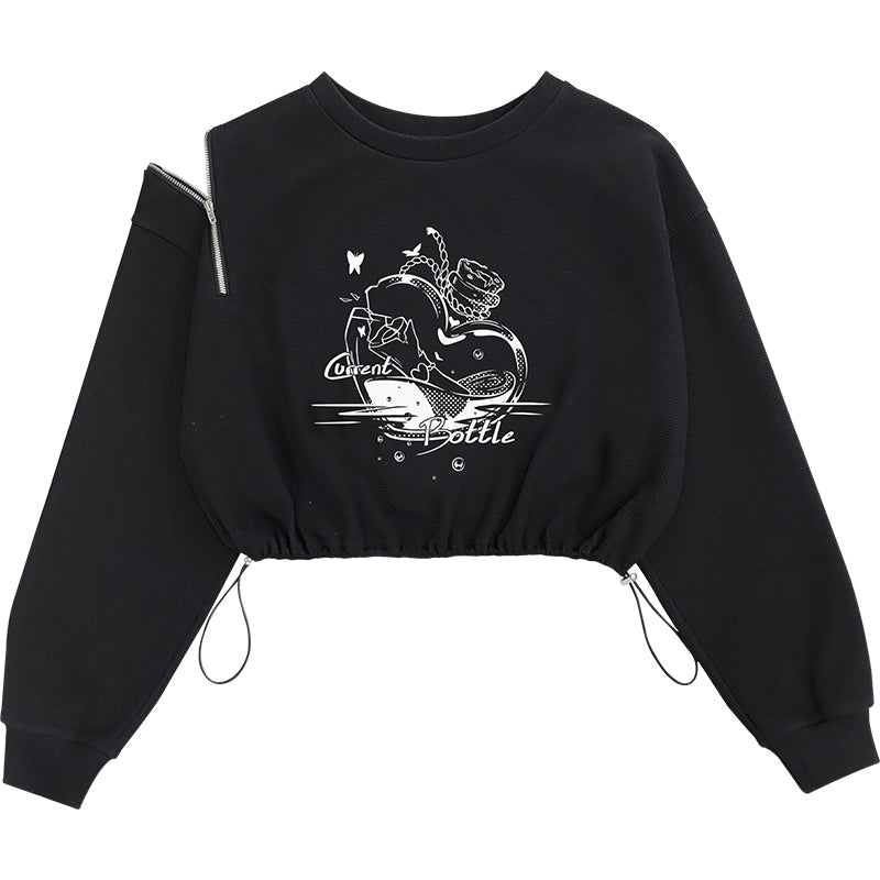 Black irregular cropped sweatshirt PL21101