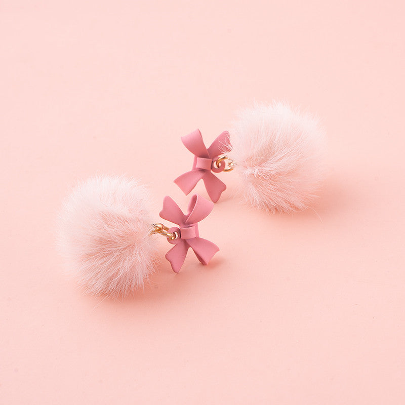 Pink Bow Pom Earrings PL52770