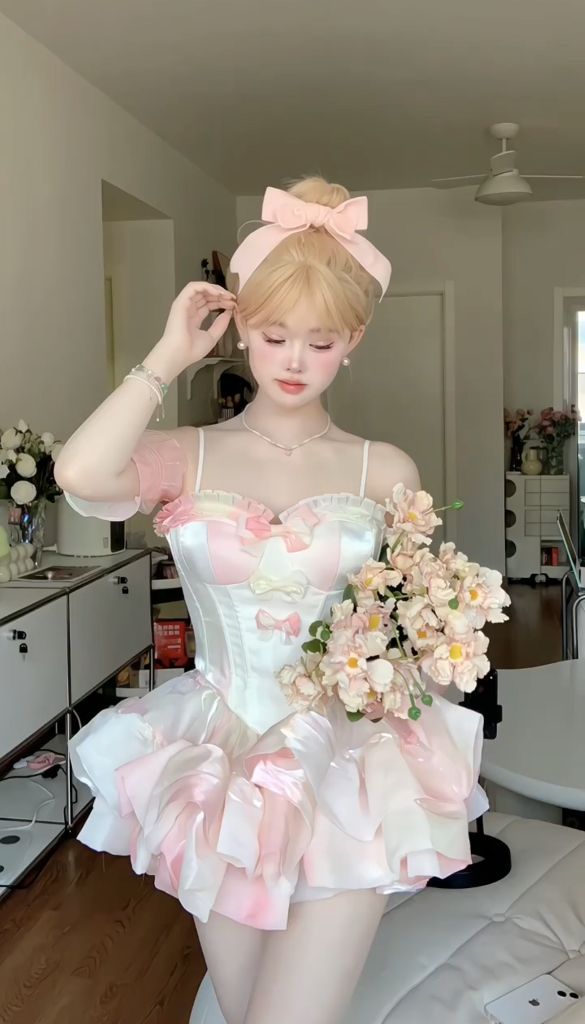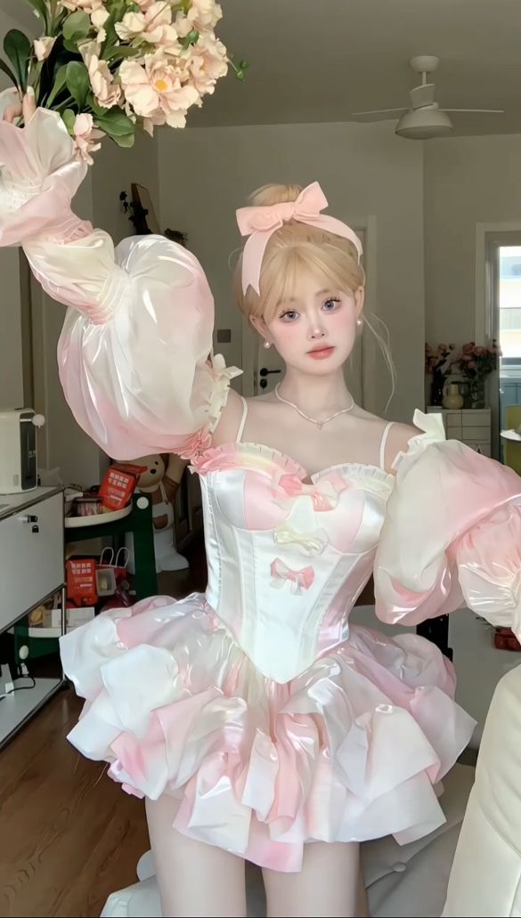 Color: Pink tube top + pink trailing + pink pumpkin pants