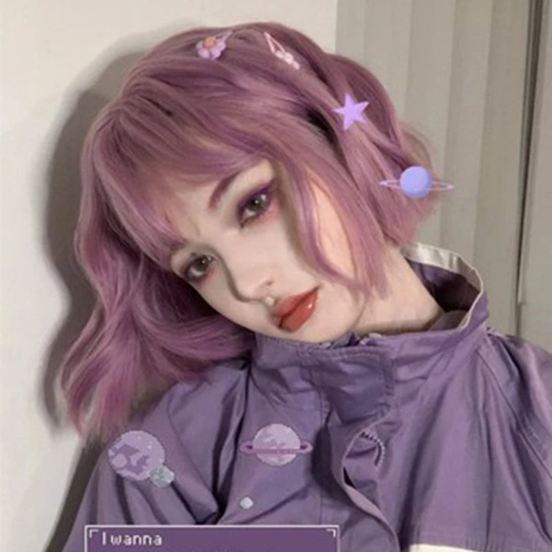 Purple short curly wig PL50504