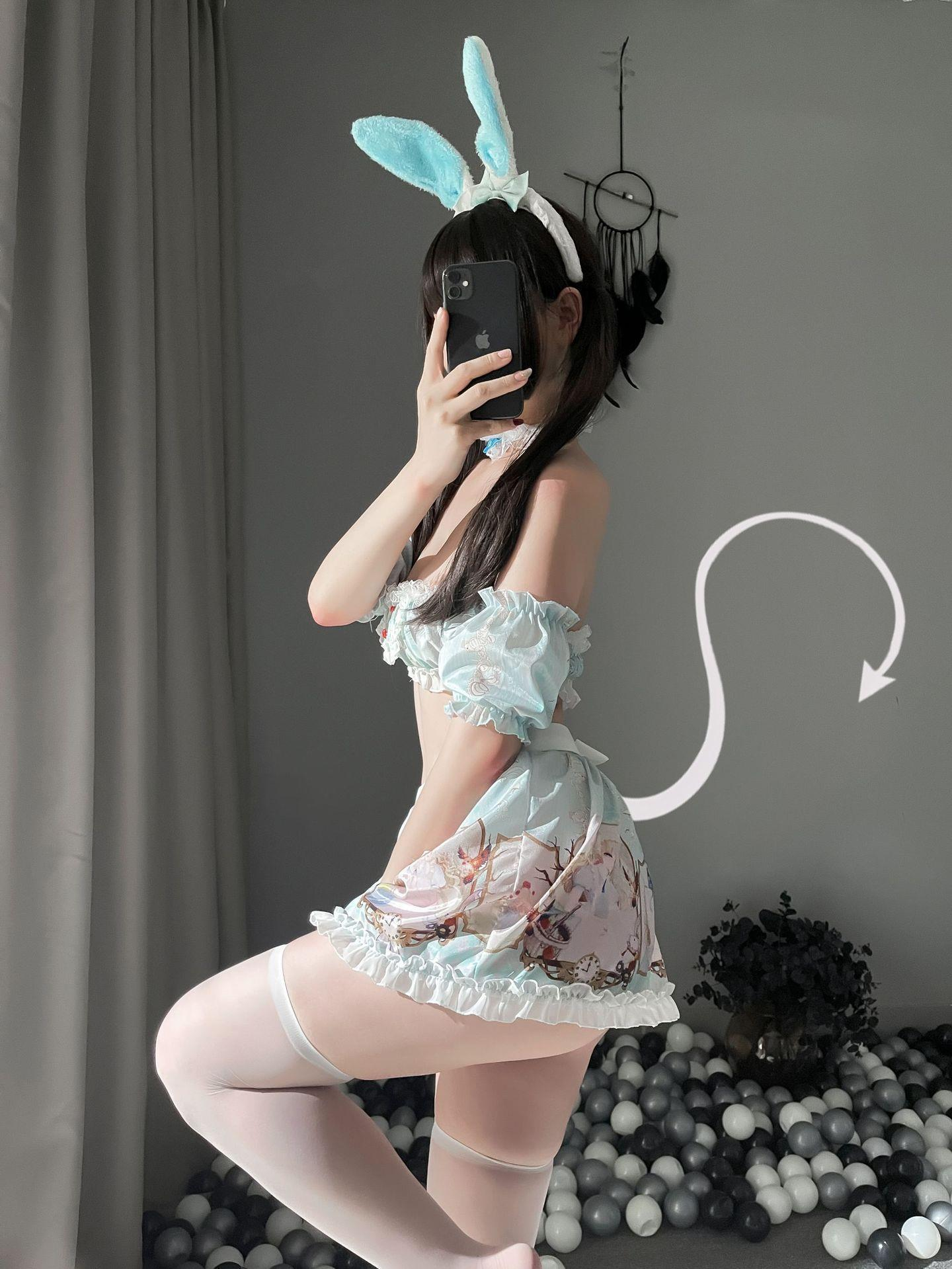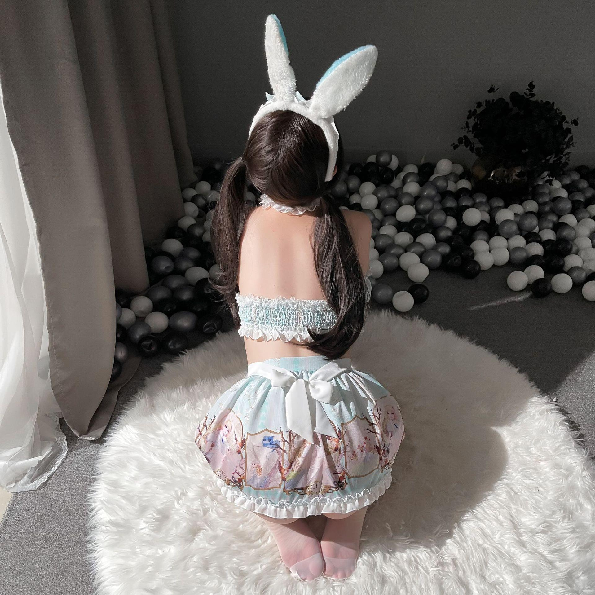 Style: Rabbit ears + neck ring + arm rings * 2 + tube top + skirt + apron + underwear + flat white stockings
