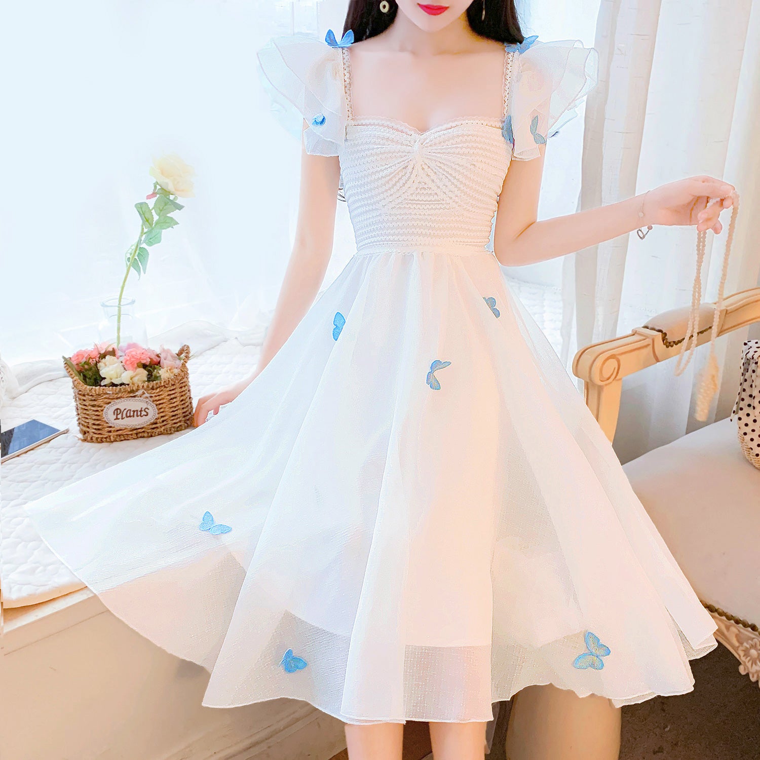 WHITE BUTTERFLY PRINT DRESS PL52286